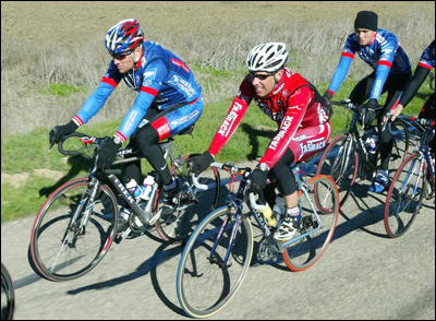 Rob shares some pointers heading up Gibralter Rd. with Lance. |